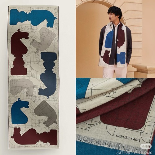 Hermès 여름 신상 남성용 하이엔드 실크 린넨 스카프 (양면 동일 컬러, 지도 패턴)