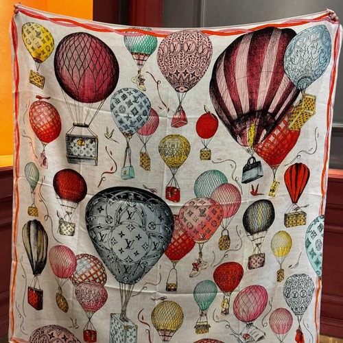 루이비통의 새로운 U 得 and Away 시리즈 실크 스카프입니다. 실크 스카프에 열기구 Monogram 디자인이 새겨져 있습니다. 여행을 떠나는 듯한 느낌을 주며, 하늘을 향해 나아가는 듯한 이미지를 표현합니다.