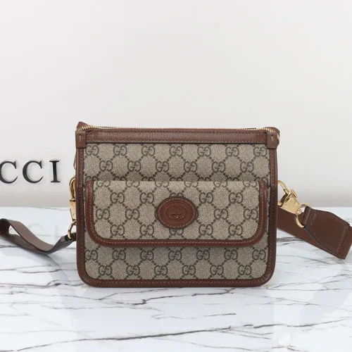 GUCCI 구찌 GG 수프림 인터로킹 G 메신저백 브라운엣지 #674164