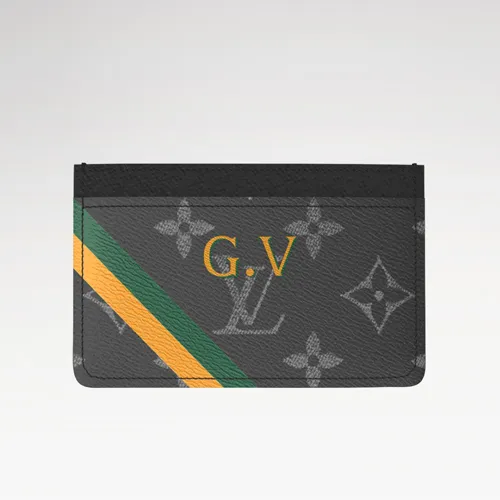 작지만 강렬한 존재감을 담은 Louis Vuitton Mon Monogram 카드 홀더 (P01960). 루이비통의 아이코닉한 모노그램 이클립스 캔버스 위에 나만의 이니셜과 컬러풀한 스트라이프 디테일을 더해, 세상에 단 하나뿐인 맞춤형 감성을 완성합니다.