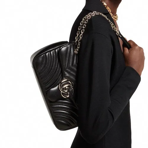 GUCCI GG 마르몽 스몰 포켓 디테일 숄더팩 블랙