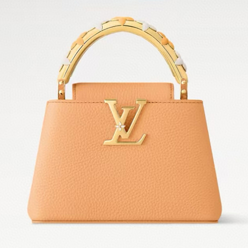 Louis Vuitton 루이 비통 카퓌신 미니 핸드백 피치 오렌지 플로럴 핸들 21cm ..