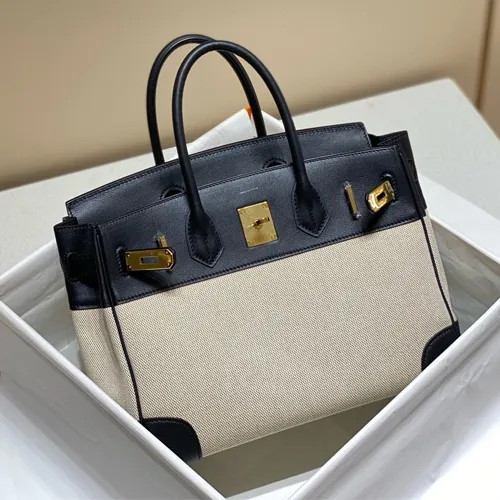 Hermes 에르메스 버킨 30 Swift 가죽 & 캔버스 빈티지 블랙 금장