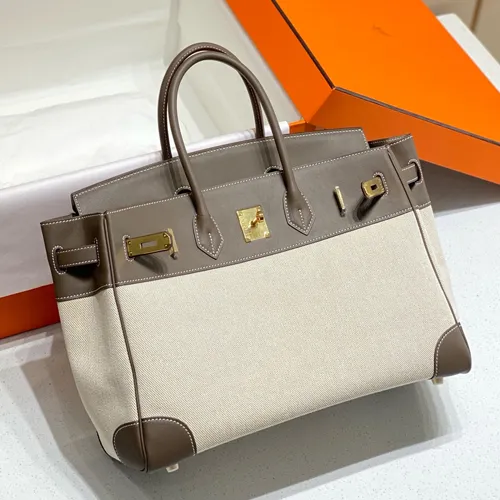 Hermes 에르메스 버킨 35 Swift 가죽 & 캔버스 빈티지 오렌지브라운 금장