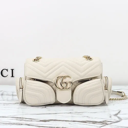 GUCCI GG 마르몽 라지 포켓 디테일 숄더팩 화이트