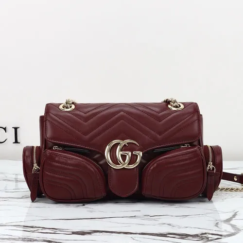 GUCCI GG 마르몽 라지 포켓 디테일 숄더팩 화이트 버건디