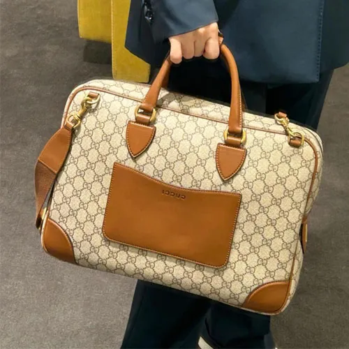 GUCCI GG 엠블럼 미디움 브리프케이스 821149 베이지 다크 브라운