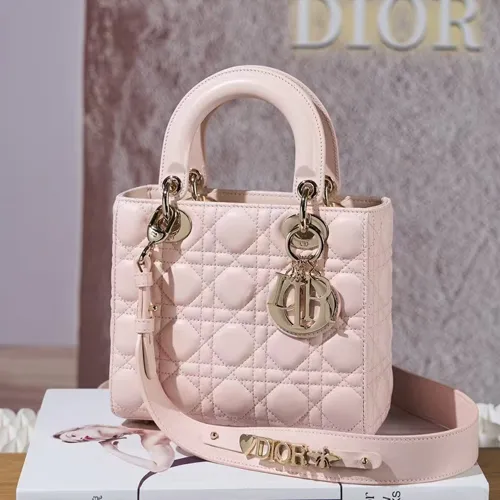 Lady Dior 디올 My ABCDior 라이트 핑크 램스킨 금장 20CM