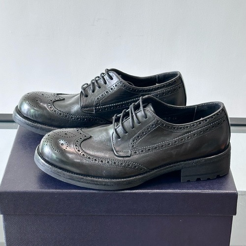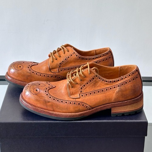 Prada 프라다 남성 워시드 홀스레더 수제 브로그 클래식 슈즈