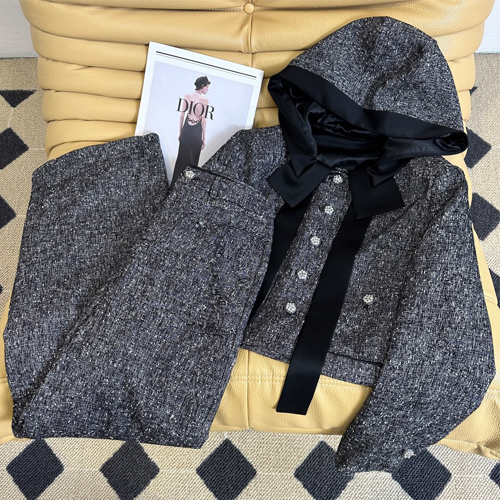 Chanel 샤넬 후드 트위드 니트 투피스 세트 (상의+바지)
