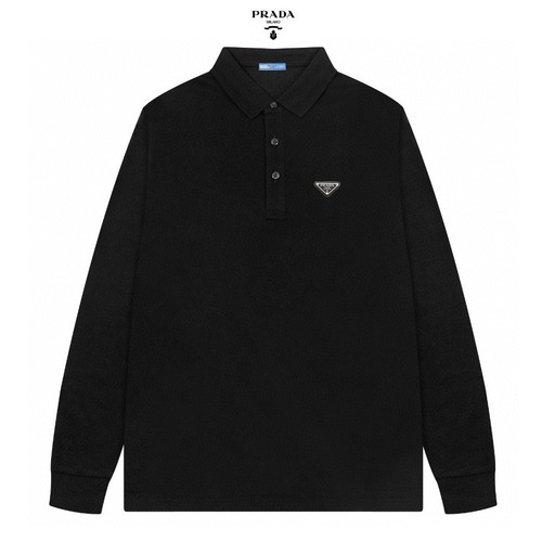 PRADA 프라다 남성 코튼 비즈니스 캐주얼 긴팔 폴로 셔츠