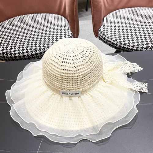 Louis Vuitton 루이비통 2025 신款 蕾丝 大帽檐 여름 해변 모자..