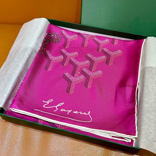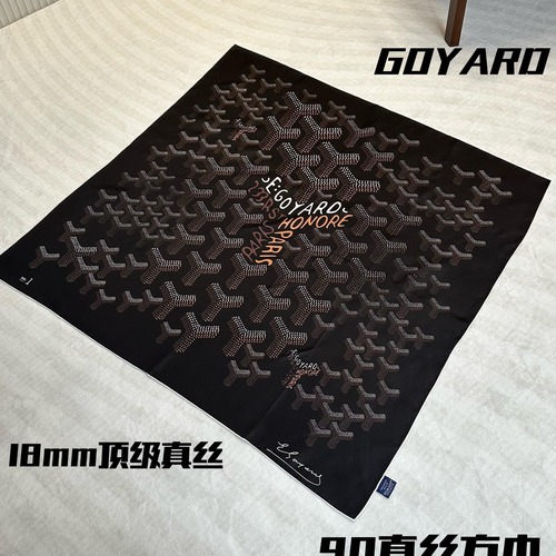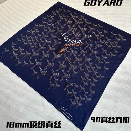 Goyard 신상 100% 실크 스카프 (양면 동일 컬러, 수공예 핸드롤 마감)