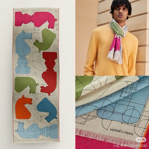 Hermès 여름 신상 남성용 하이엔드 실크 린넨 스카프 (양면 동일 컬러, 지도 패턴)..