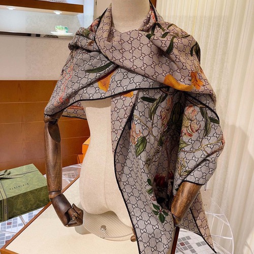 Gucci 구찌 GG 플라워 양모 실크 스카프 60cm