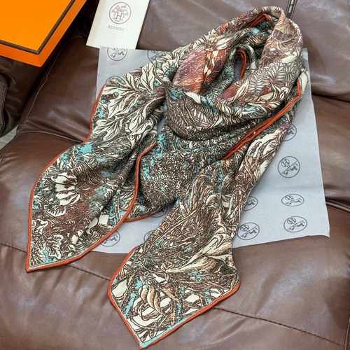 Hermès 2025 가을·겨울 신상 실크울 혼방 스카프 (양면 수공예 핸드롤)140cm..